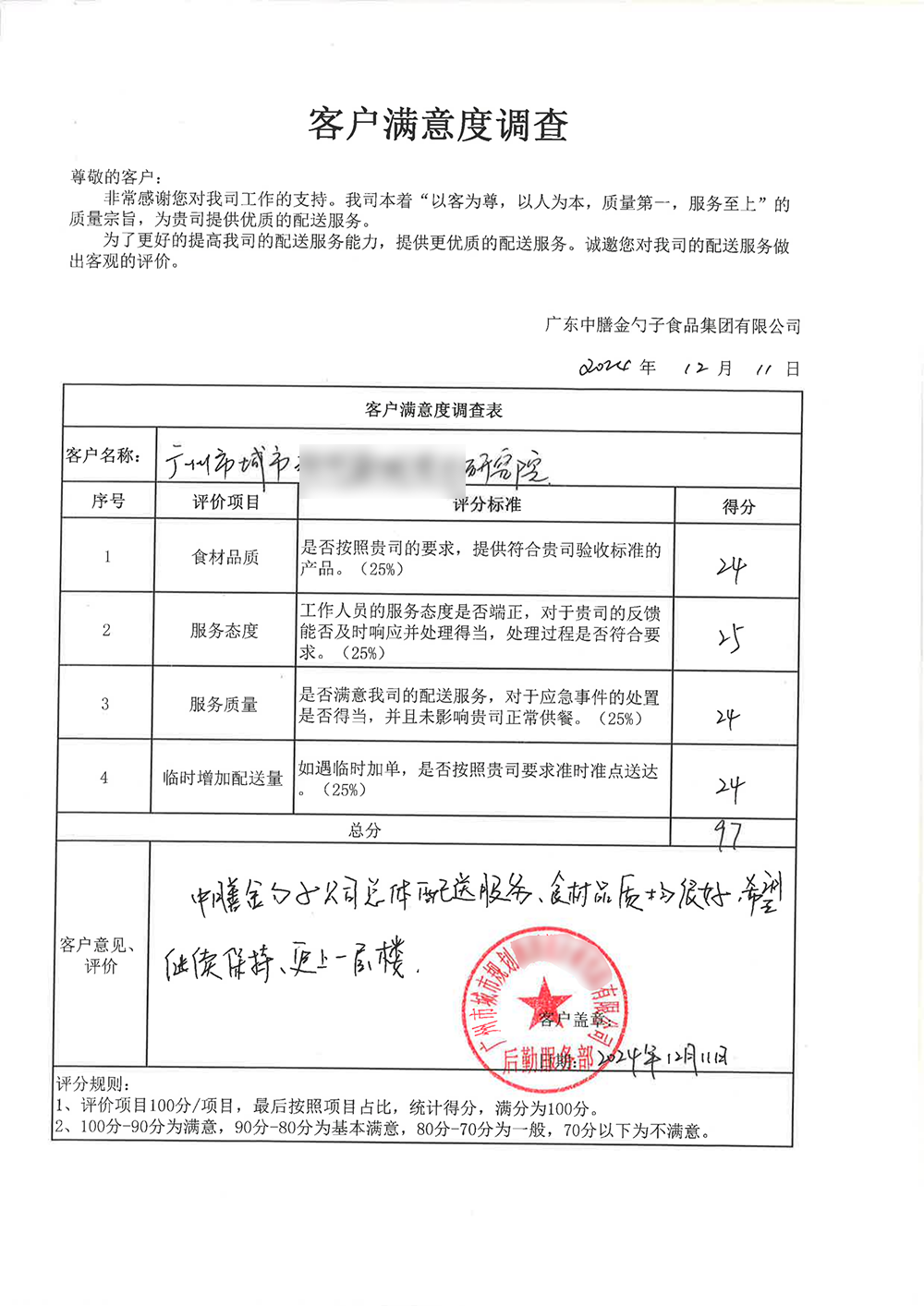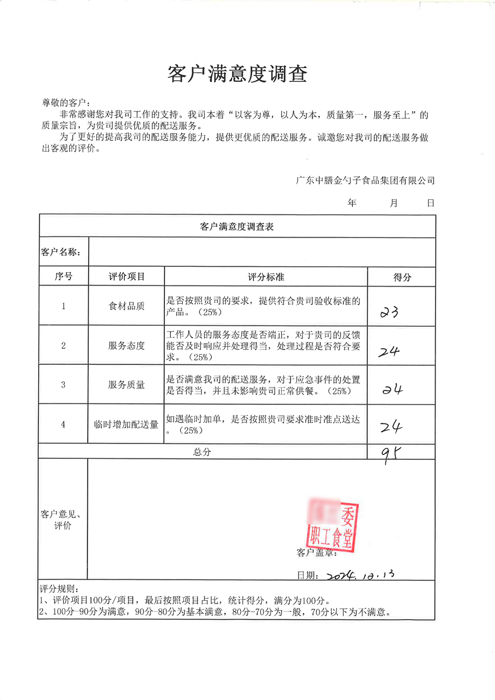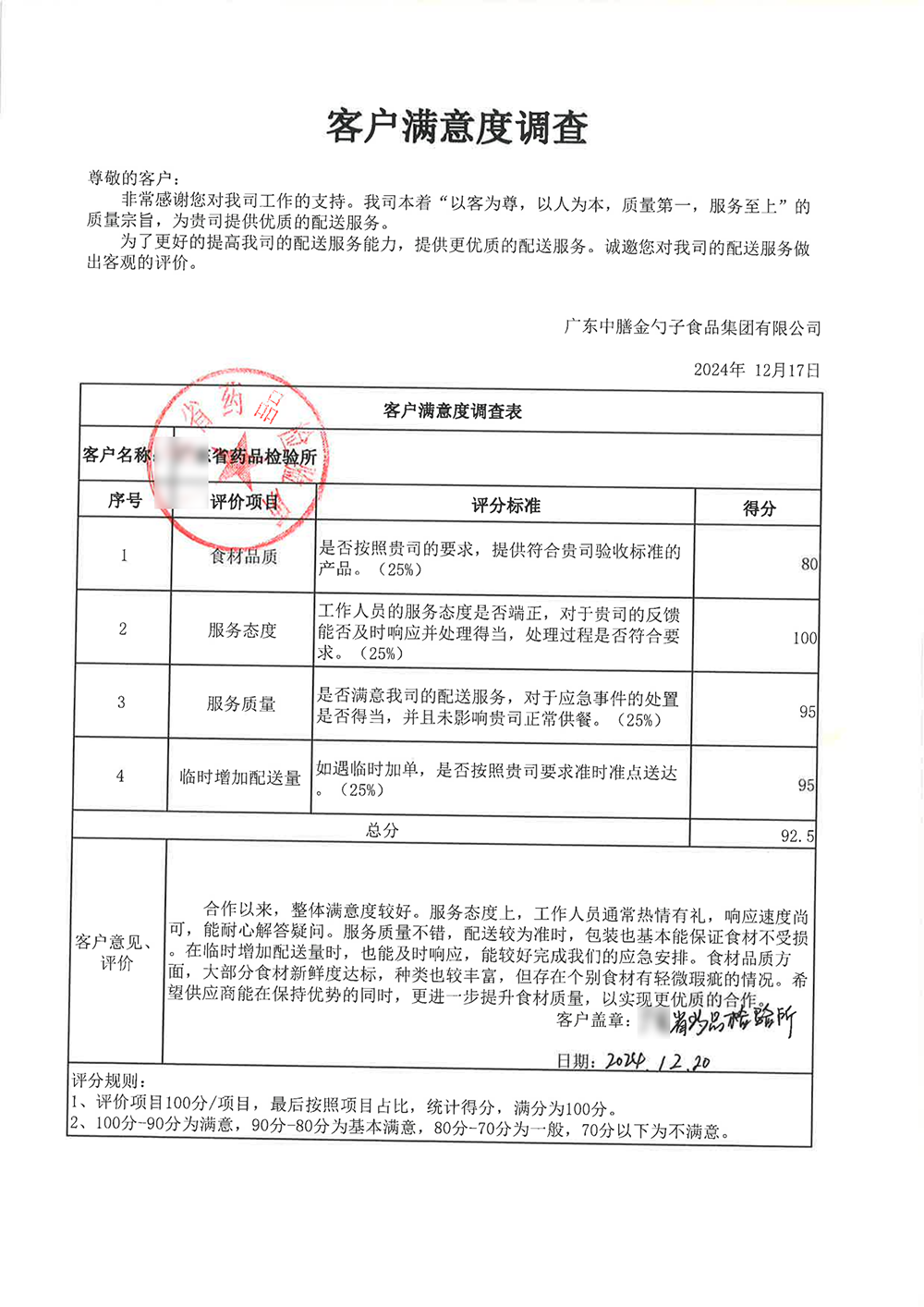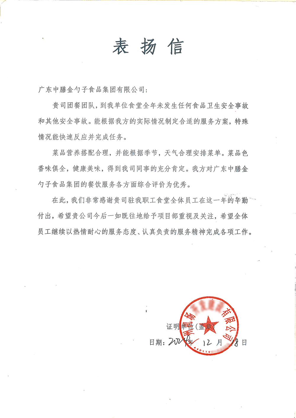 4、2024年3月,金勺子團餐337門店獲泉州市市場監督管理局贊譽,食安管理成為地區示范標準。