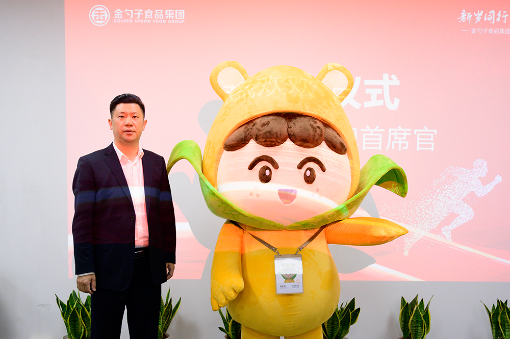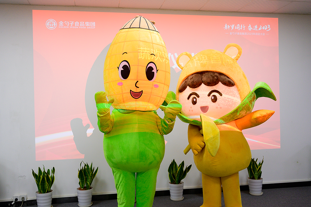 下午,在大家的見證下,舉行谷小兜和蔬歡歡的交接儀式,完成企業IP形象蔬歡歡任命儀式。意味著從今天起,麥小谷正式退出歷史的舞臺,蔬歡歡正式成為金勺子食品集團的首席品牌官,陪伴公司和大家共同成長。