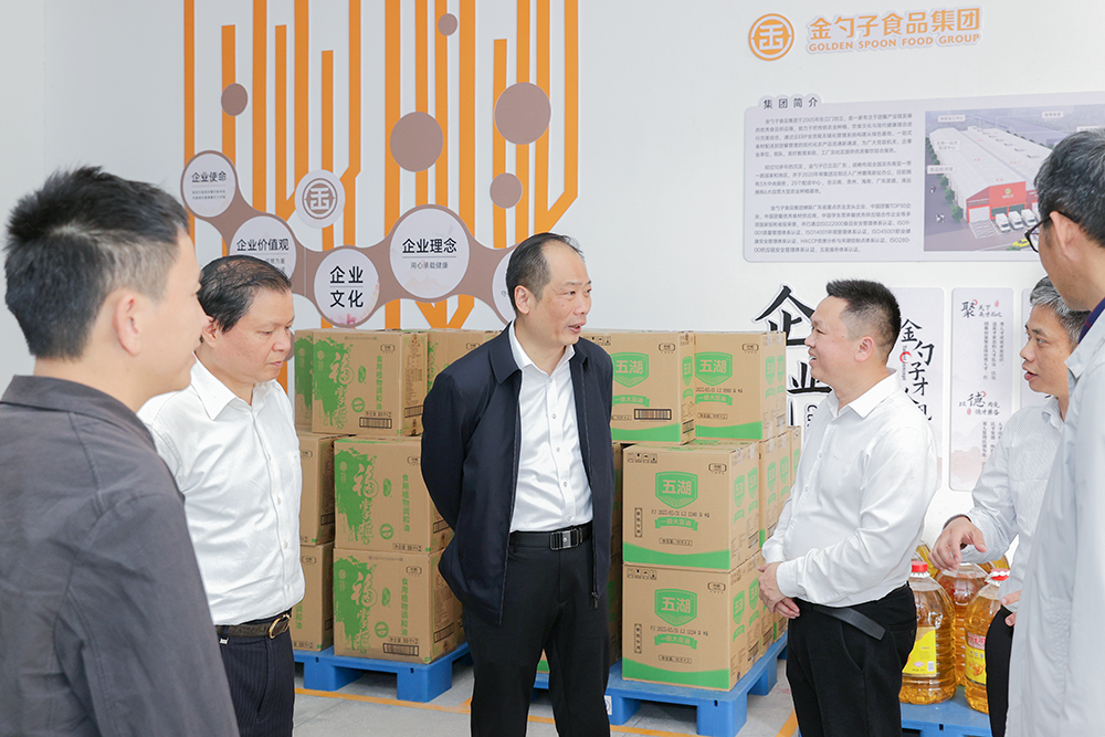 2023年4月11日下午,福建省泉州市人民政府副市長蘇耿聰一行蒞臨金勺子食品集團泉州公司指導工作,泉州公司總經理黃東堅、福州公司總經理黃龍金、團餐項目經理李仁宗等人熱情接待。