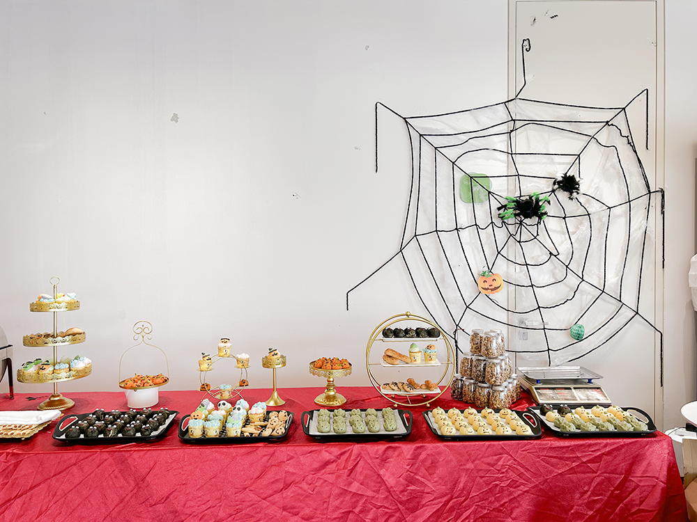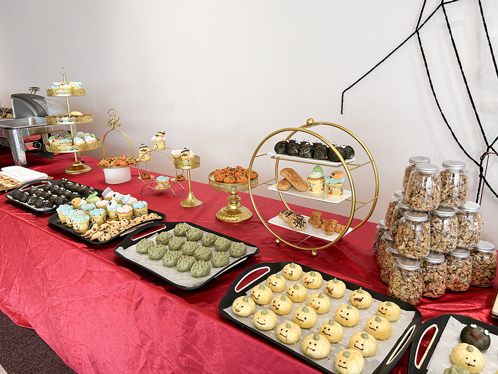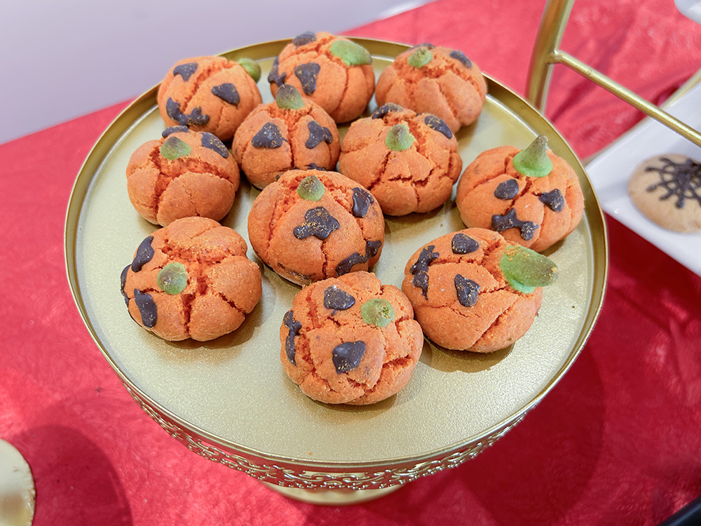 10 月 30 日—11月1日,金勺子餐飲679門店團隊精心策劃了一場別開生面的萬圣節(jié)特色供餐活動,利用南瓜、鬼怪、糖果等元素,將餐廳裝點成充滿神秘與奇幻的萬圣節(jié)氛圍,邀職工一同感受舌尖上的美食魅力!活動期間,金勺子餐飲的廚師團隊激發(fā)無限的想象力和創(chuàng)造力,推出美味又健康,具有一定的營養(yǎng)價值的萬圣節(jié)特色點心,讓節(jié)日的氛圍更加濃厚。