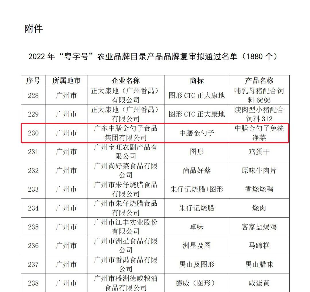 1月,我司金勺子免洗凈菜再次入選“粵字號”農業品牌目錄,為繪就掛滿碩果、寫滿喜悅的現代化新農村貢獻自己的力量。