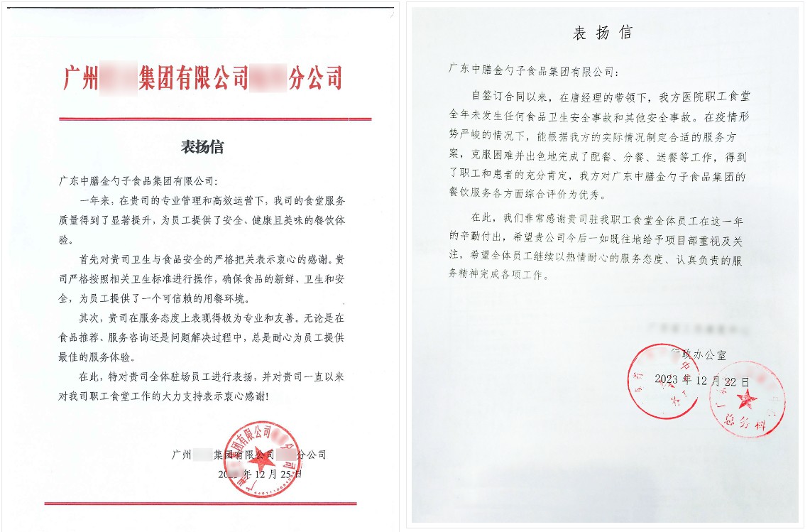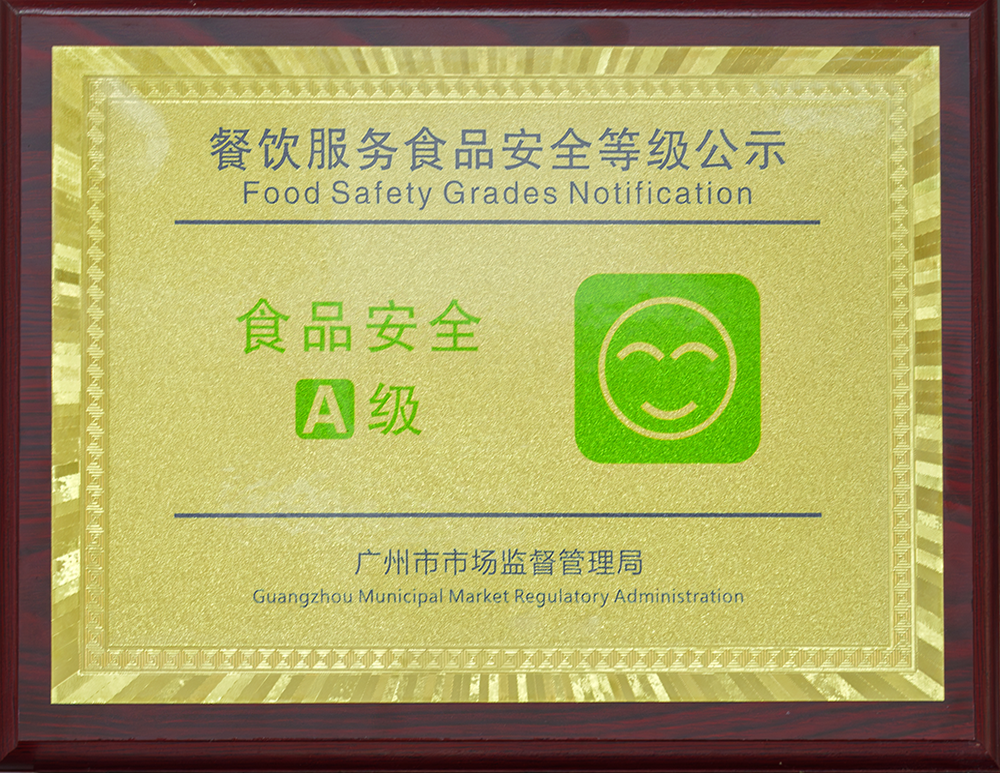 8月,金勺子團餐704門店整體服務及食品安全管理水平較高,先后被廣東省食品藥品監督管理局和廣州市市場監督管理局授予“食品安全A級”榮譽。