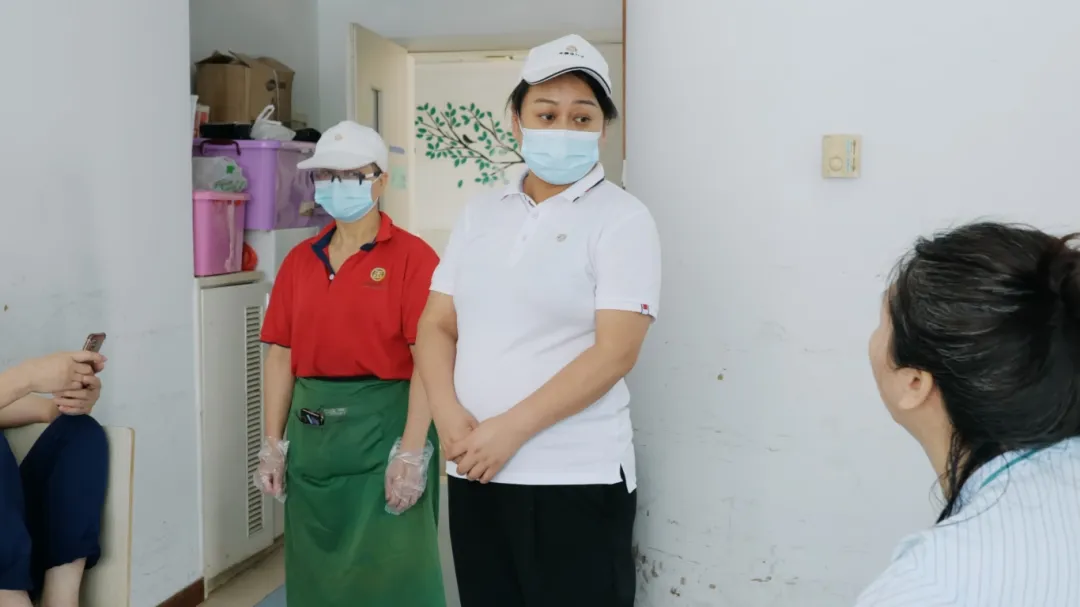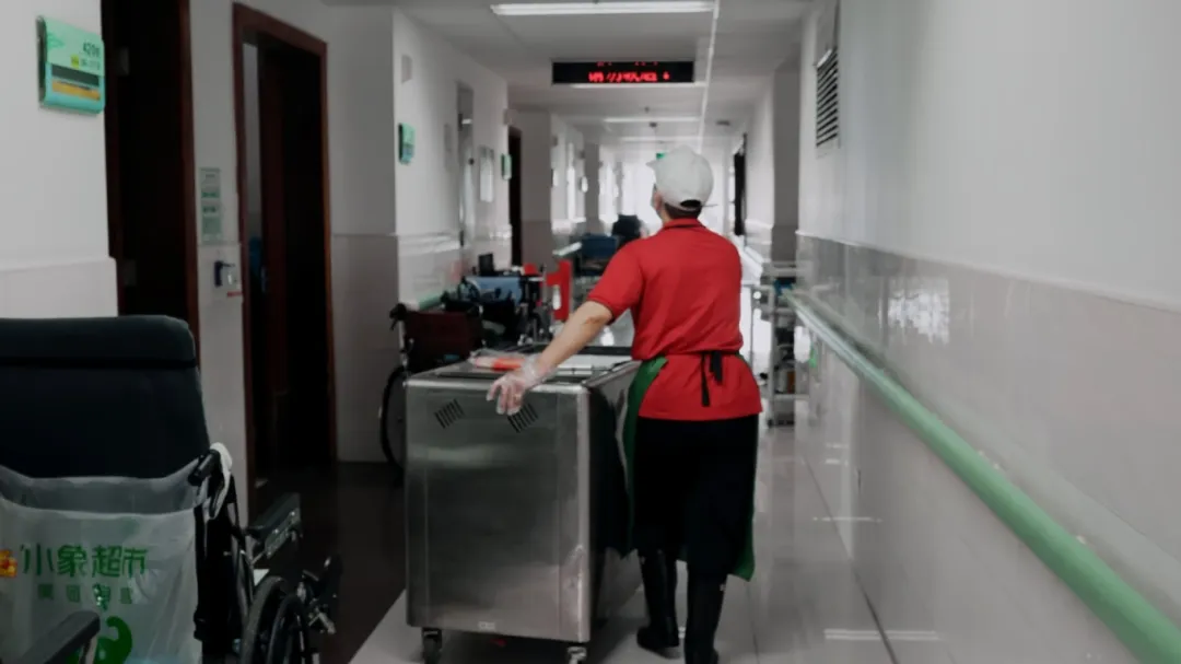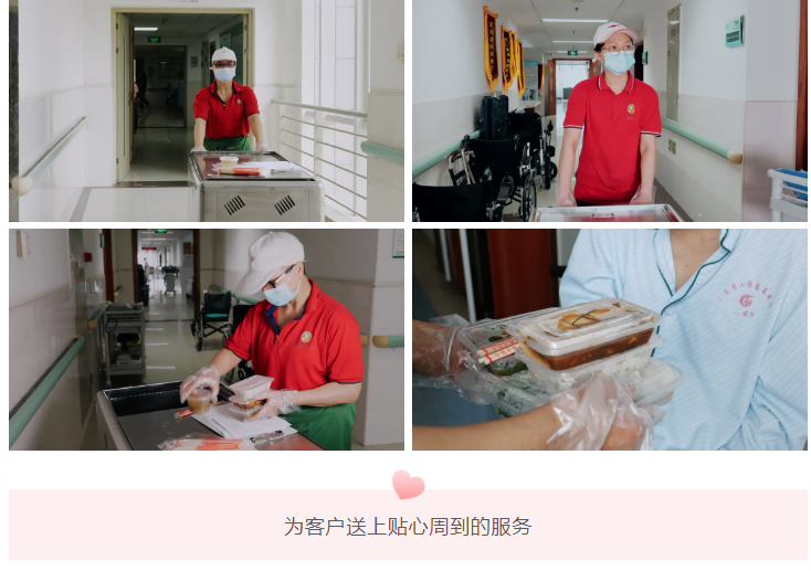 面帶微笑,步履輕盈,用保溫車一層一層配送,