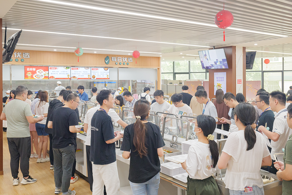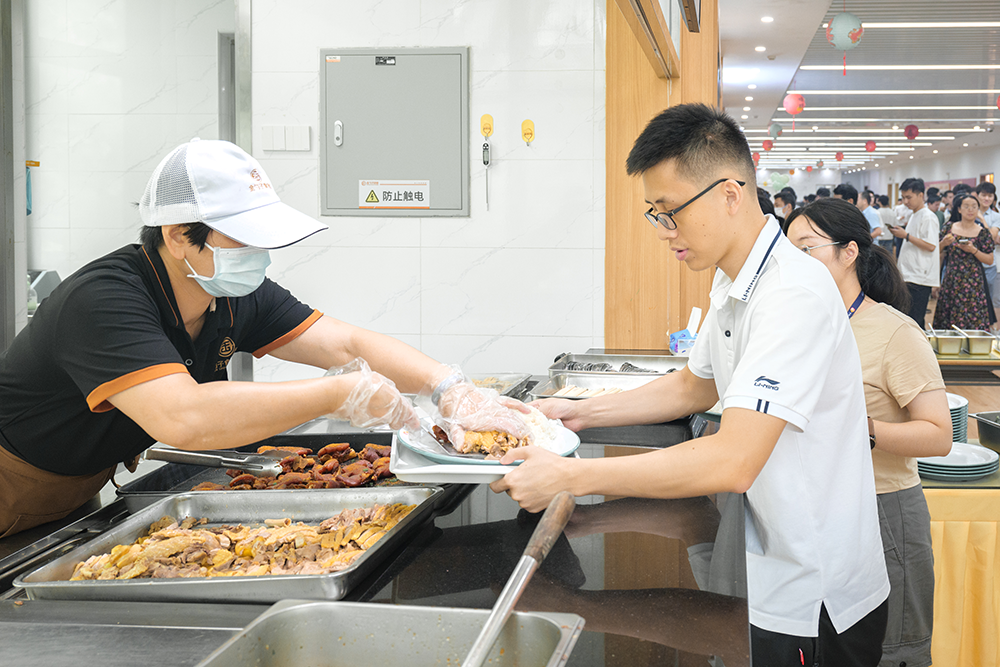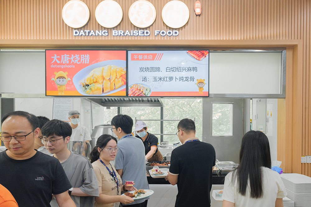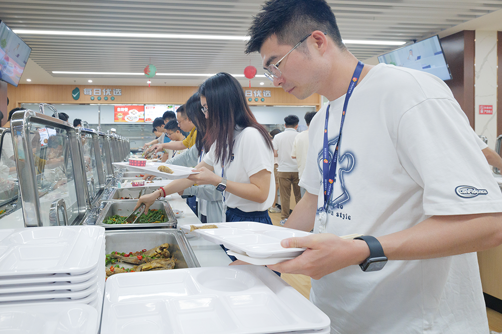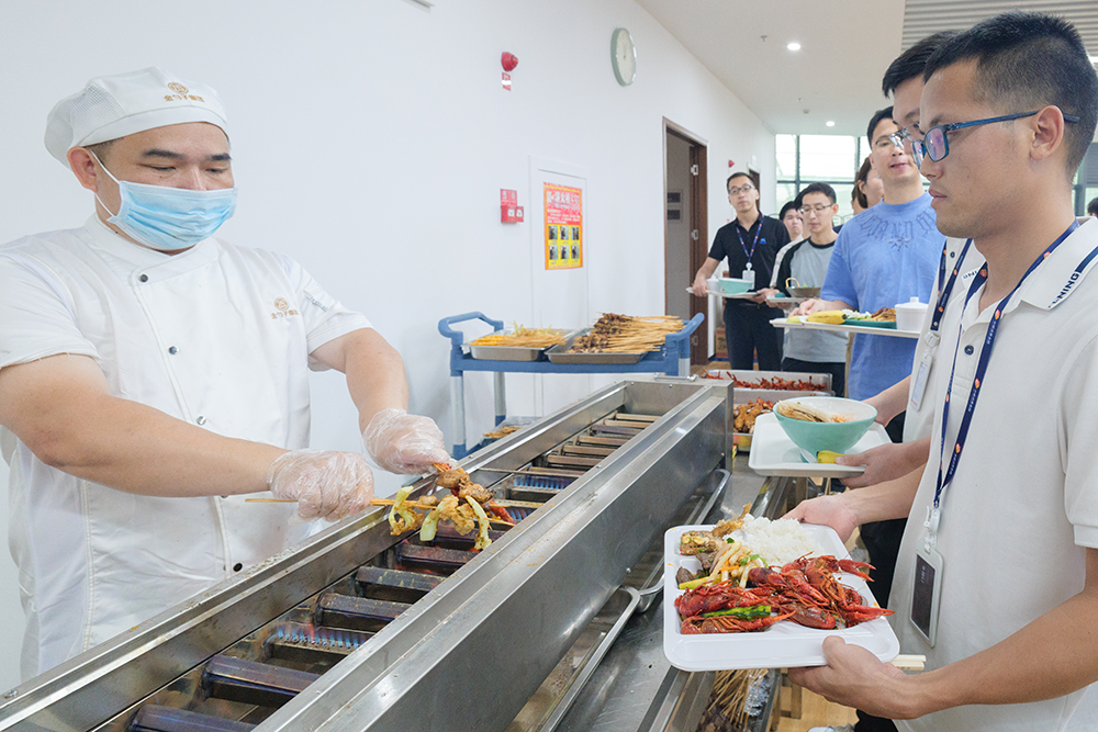 現(xiàn)場金勺子團(tuán)餐749門店食堂開設(shè)自助餐區(qū)、特色檔口區(qū)等,提供多樣化的選擇,每一道菜都經(jīng)過精心烹飪,每一道菜的制作都充滿了熱情和匠心。