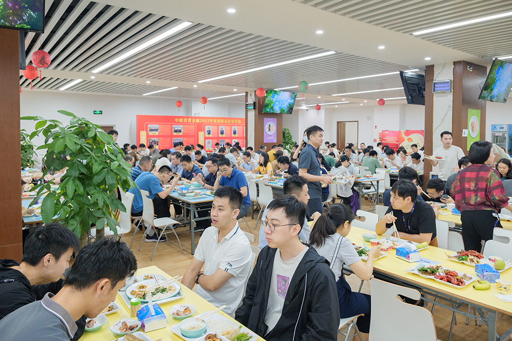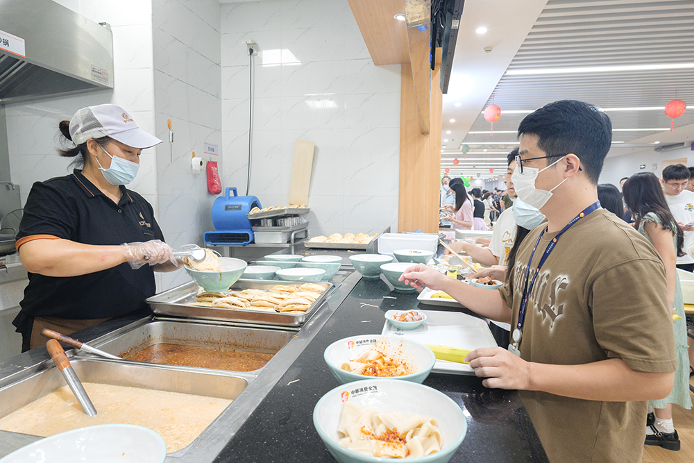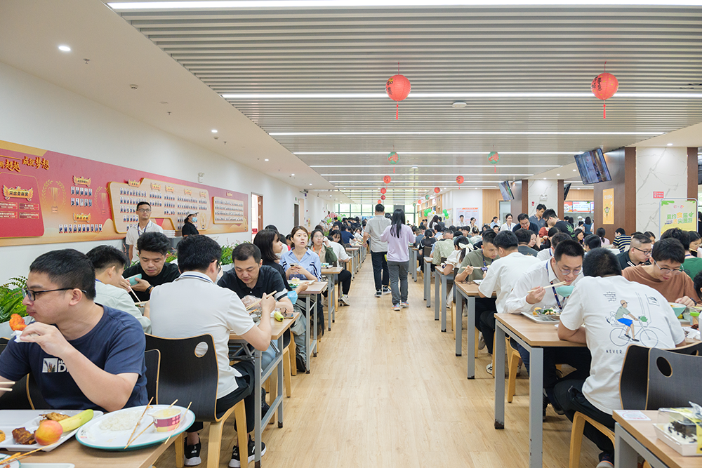 職工們有序領(lǐng)取美食后,圍坐在餐桌旁,品嘗著美食,臉上洋溢著滿足和幸福的笑容。他們相互分享著美食的故事,食堂內(nèi)彌漫著溫馨愉快的氛圍。